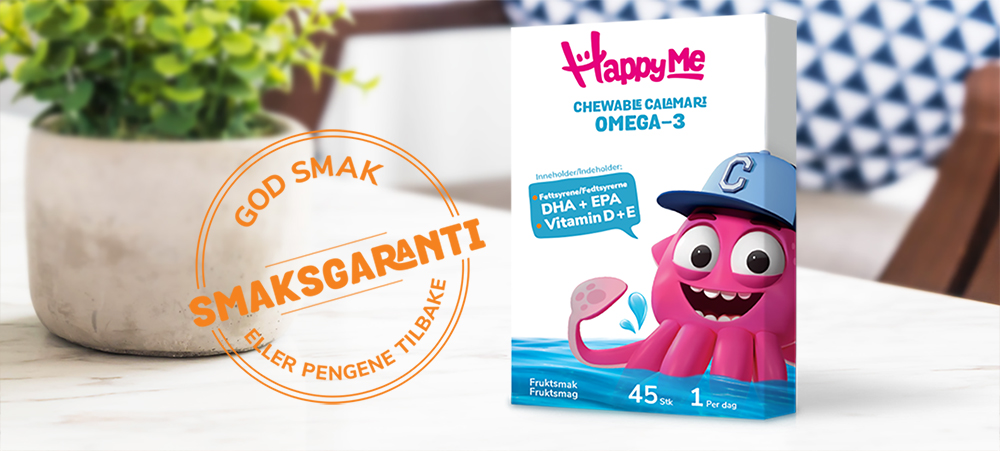 Norske barn spiser ikke nok fisk i hverdagen, og derfor bør man gi tilskudd av omega 3. Det finnes flere slike tilskudd på det norske markedet, men HappyMe Chewable Calamari Omega-3 er det eneste omega 3 tilskuddet basert på olje fra calamari.